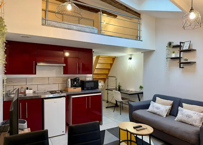O apartamento Charmant Duplex En Centre-Ville Proche Du Puy-Du-Fouu oferece cozinha totalmente equipada, bem como quartos com sofá, secretária e área de estar. Os hóspedes poderão encontrar Presbytere Notre-Dame dentro de 200 metros da propriedade, enquanto Theatre Saint-Louis é de 350 metros de distância.